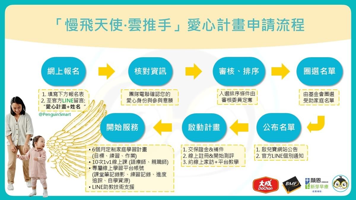 所有報名家庭將在核對條件符合後列入贊助等候名單,我們將與公益夥伴進行聯合收案討論,並根據補助金贊助款逐梯次啟動。